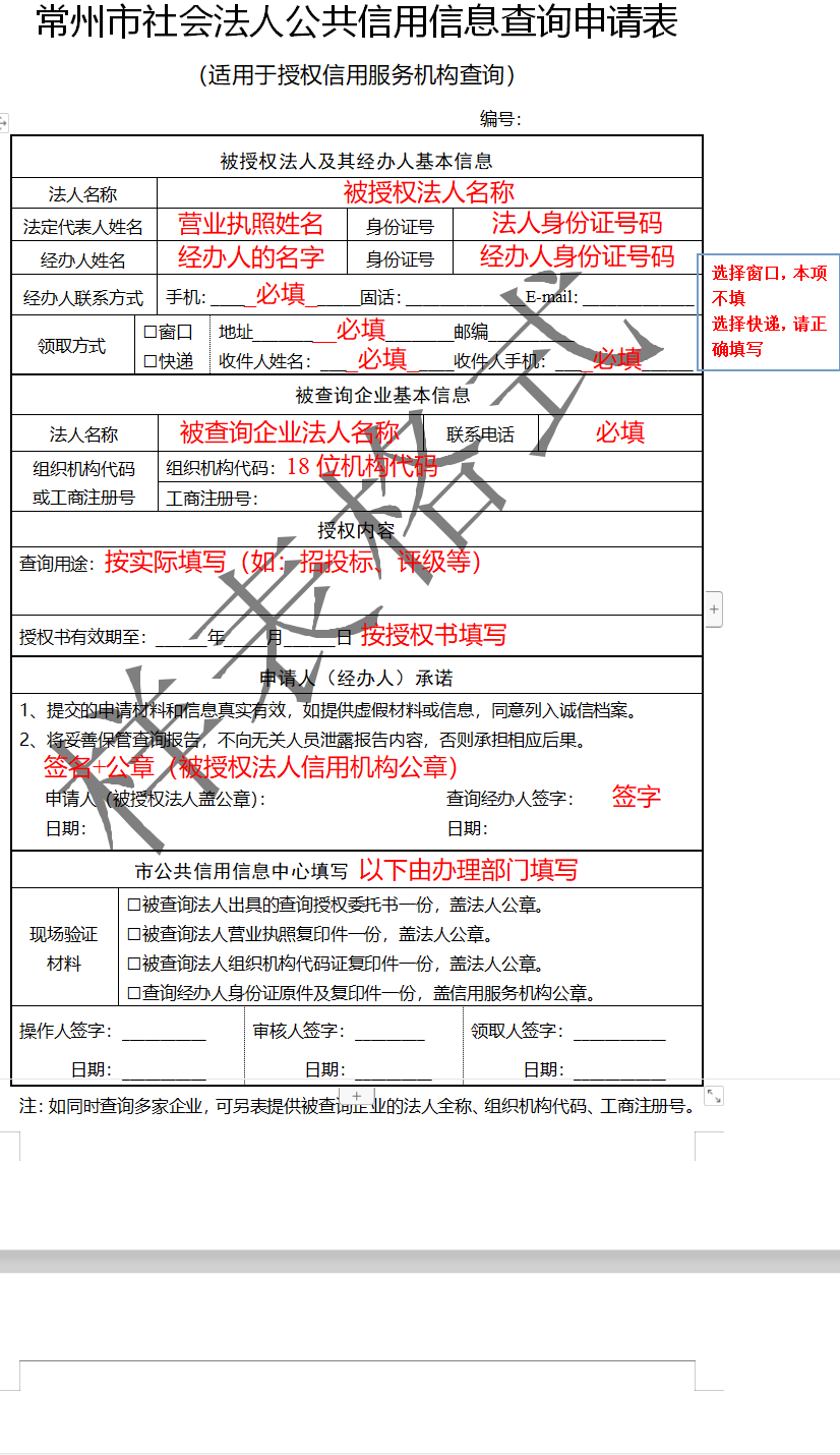 常州市社会法人公共信用信息查询申请(适用于授权信用服务机构查询)