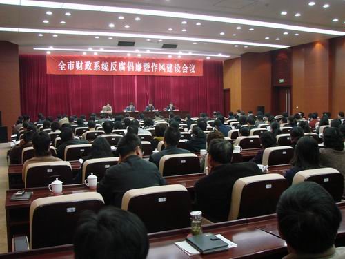 3月31日上午,全市财政系统反腐倡廉暨作风建设会议在行政中心召开,市财政局全体干部职工、辖市区财政局长、纪检组长、办公室主任、预算科长参加会议。