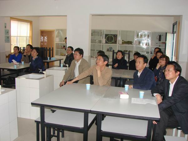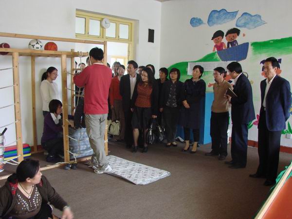 在简陋的食堂兼电脑演示室里,中心给党员干部播放了自己制作的宣传短片,详细介绍了自闭症的典型症状、治疗手段、相关研究、诊断护理以及社会对自闭症康复的关注与支持。更多地描绘了中心发展的美好规划,也委婉地表达出目前中心面临的困难与窘境。短短数十分钟,带给每一个党员干部以强烈的震撼和巨大的冲击。