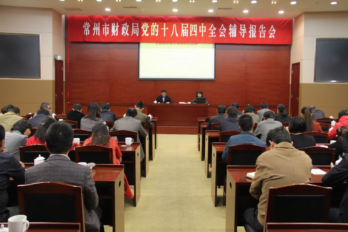 11月中旬,常州市财政局专门邀请了常州党校行管教研室主任、教授王睿倩,为局干部职工作“全面推进依法治国的总蓝图”专题辅导。市财政机关全体工作人员、事业单位负责人参加了活动。 王教授从制度系统创新、宪法实施创新、司法改革创新、法治政府创新等方面入手,详细阐述了依法治国的理念,并就我国社会主义法治进程、治理国家的基本方略和十八届四中全会“亮点”进行了深入的解读。王教授将理论与案例相结合,语言形象生动,分析鞭辟入里。机关干部职工普遍反映,讲座紧贴实际、内容详实,有助于财政干部职工进一步加深依法治国的理解和认识,领会依法治国的新观点和新举措,提升法治观念,提高依法行政能力。 |