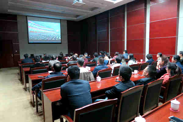 10月18日上午9点,中国共产党第十九次全国代表大会隆重开幕。市财政局组织党员干部集中收看了开幕会现场直播,戚小如、谭志文、周启彪等局领导到场观看。