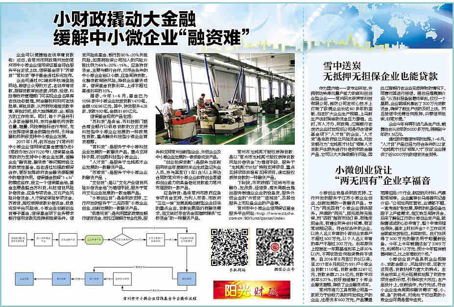 《常州日报》2017年8月28日A5专版——小财政撬动大金融缓解中小微企业“融资难”