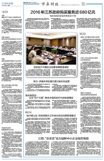 2017年9月1日《江苏经济报》——常州:加强“制度+流程”规范 促PPP项目推进