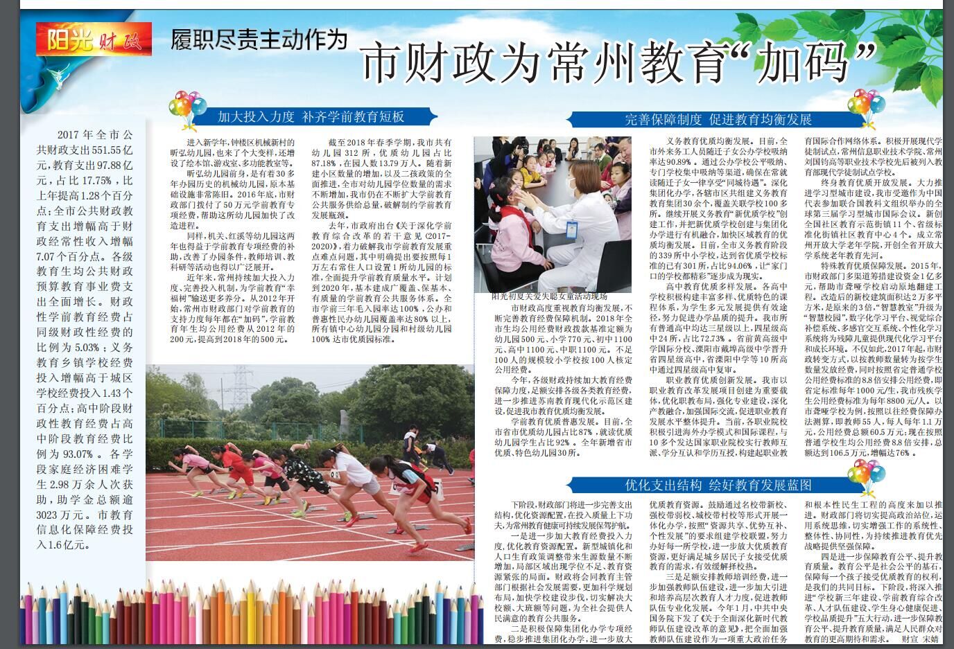 履职尽责主动作为,市财政为常州教育“加码”——《常州日报》2018年6月29日A2版