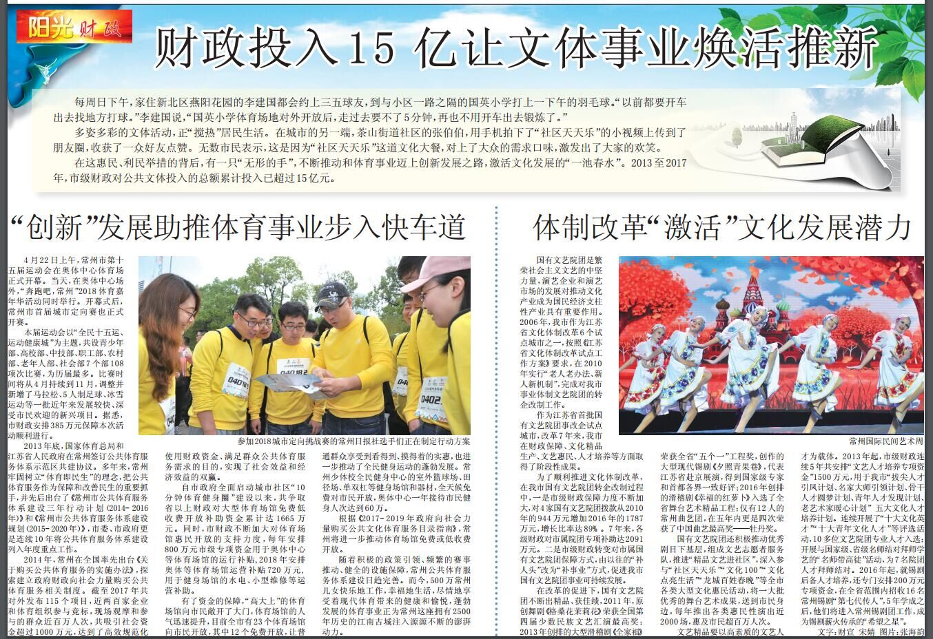 财政投入15亿让文体事业焕活推新——《常州日报》2018年5月28日A3版