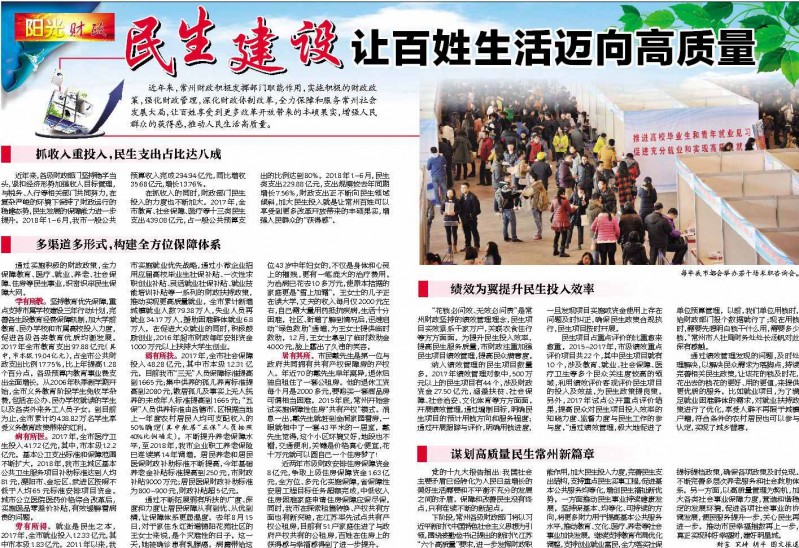 民生建设让百姓生活迈向高质量——《常州日报》2018年9月7日A2版