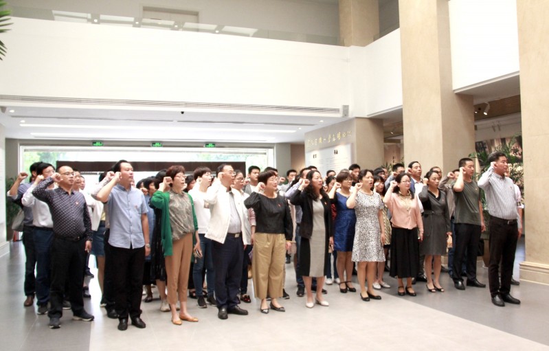 在瞿秋白同志铜像前,面对鲜红的党旗,全体党员紧握右拳,郑重宣誓,用饱满的热情、昂扬的斗志表达出作为共产党员的自豪感与使命感,更加坚定了为共产主义奋斗终身的理想信念。