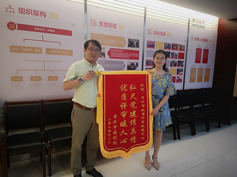 近日,常州市福利院副院长杨勇带着一面绣有“弘尺党建传真情 优质评审暖人心”的红色锦旗来到市投资评审效能中心,对中心在市福利院4号楼整体改造工程项目建设中提供的估算评审工作表示感谢,并对评审人员的热情专业周到的服务给予了高度肯定。
