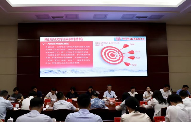 为贯彻落实党中央、国务院关于推动大规模设备更新和消费品以旧换新的重大决策部署,加速推进我市“两新”行动方案落地见效,市财政局牵头出台了《常州市“龙城设备贷”财政贴息实施细则》。为确保贴息政策早落地、早见效,7月16日,市财政局召开常州市“龙城设备贷”财政贴息政策宣传推进工作会议,一体推进政策发布、宣传解读和服务优化,精准推送政策“知、懂、用、享”服务。市财政局党组成员、副局长徐磊主持会议并讲话。市工信局、中国人民银行常州市分行、国家金融监管总局常州监管分局、各辖市区财政局,以及25家银行金融机构分管领导和业务处室(部门)负责同志参加会议。