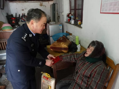 王老太是空巢老人,老伴离世多年、子女外出打工,过年也难得回 来。年近八旬的王老太虽然身体还算硬朗,可每到合家团圆的节假日不免感到凄凉。大年三十这天,老裴再次来到王老太家中,送上了自己准备的年货,询问她的身体近况和生活上的难处,陪她唠唠家常,帮她整理家务,叮嘱她保重身体。讲到这位社区民警,王老太总有说不尽的感动“:小裴警官就跟我的儿子差不多呢。”
