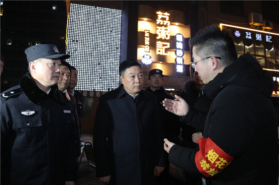 随后,常和平一行深入新城府翰苑、太湖明珠苑等住宅小区及沿街店铺实地巡查,与社区负责人、机关党员干部、禁放志愿者等参战人员亲切交谈,详细询问任务分工、春节排班等情况,听取意见建议,勉励大家迎难而上,落实责任,坚决打赢禁放管控攻坚战。市委常委、高新区党工委书记周斌一同参加检查工作。