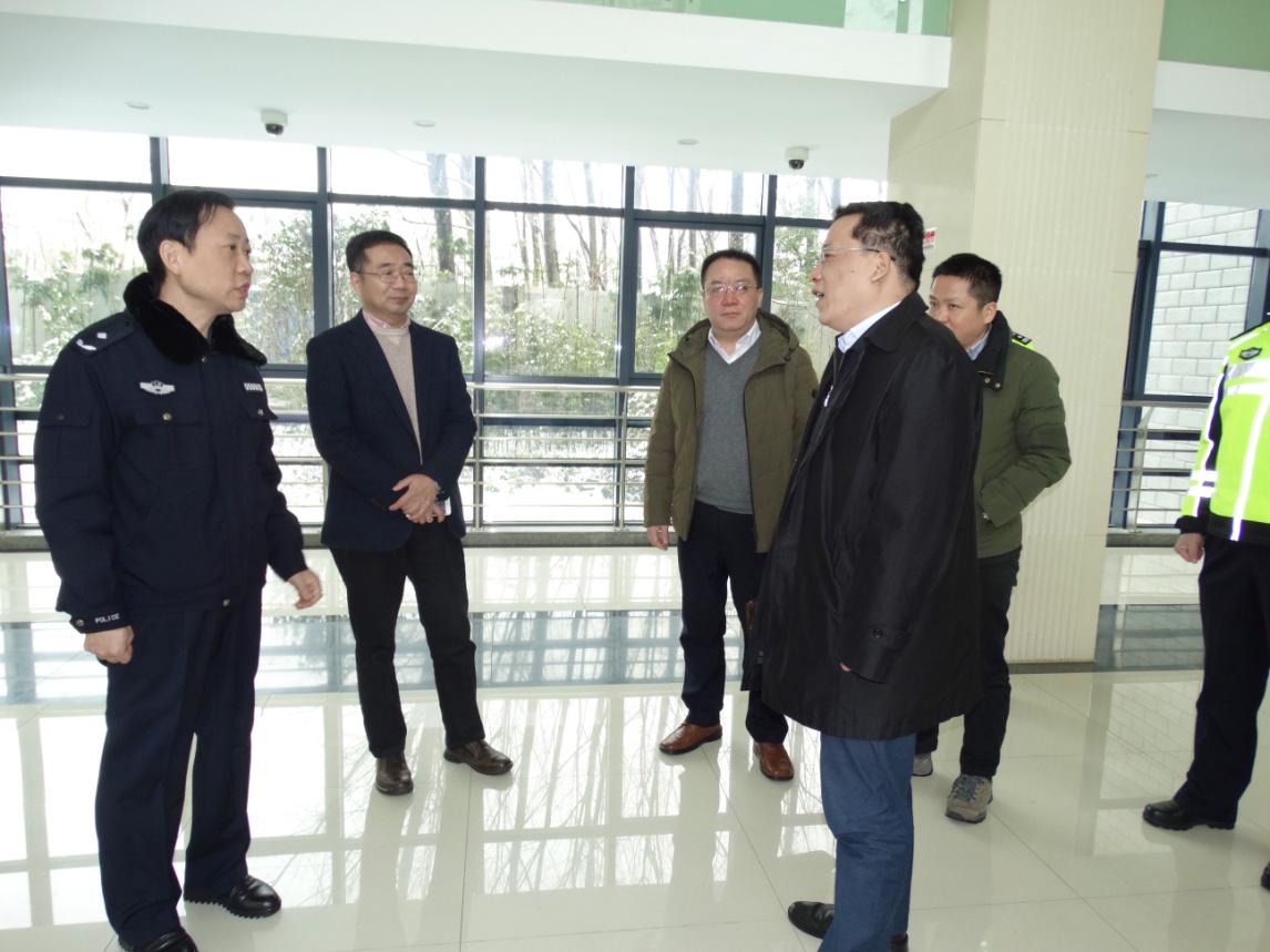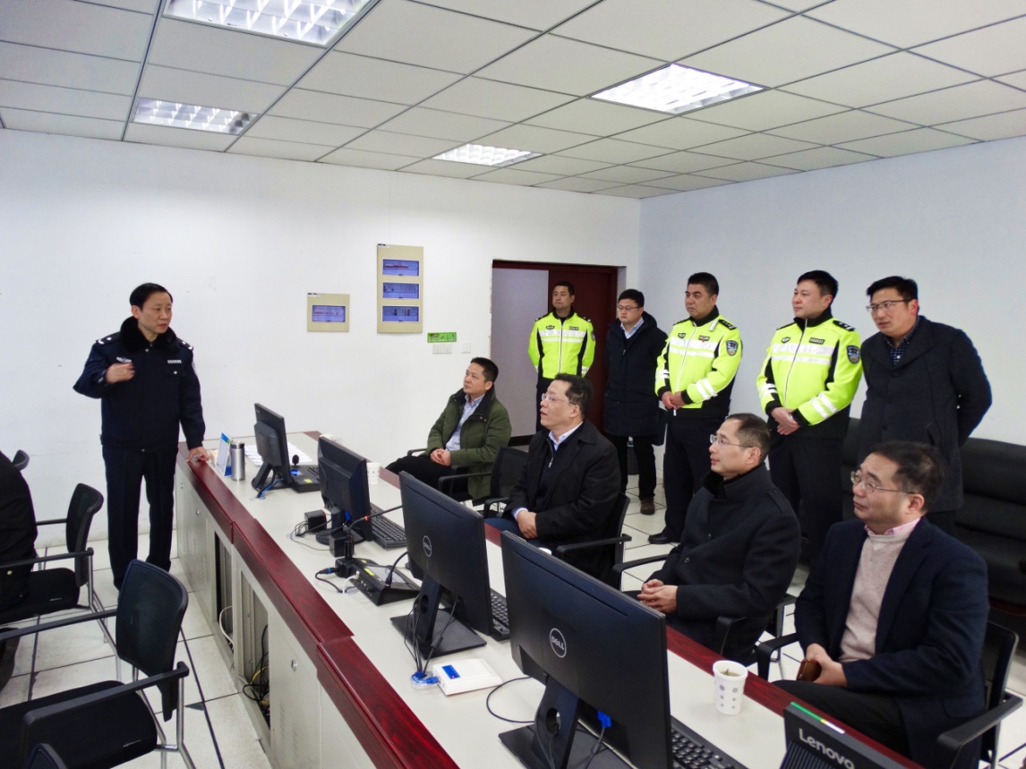 2月9日上午,市长丁纯专程到市公安局交警支队高架大队,看望慰问春节期间坚守岗位的公安交警、辅警。丁纯一行走进高架交警指挥中心,听取高架道路扫雪除冰工作情况汇报,通过大屏幕视察高架环线道路和主要枢纽、匝道实时路况,详细了解高架道路“一路五方”应急保障机制运行情况。