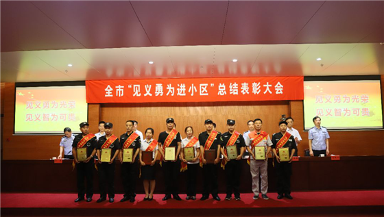 8月29日下午,常州市召开全市“见义勇为进小区”总结表彰大会,市公安局党委委员、政治部主任单笑波出席会议。会上,隆重表彰首届常州市“十佳”“二十优”见义勇为物管员,以及“见义勇为进小区”工作中涌现的6个先进集体和27个优胜单位,并就进一步深化“见义勇为进小区”工作进行再部署。市政府副秘书长钱旭健出席会议并发表讲话,充分肯定“见义勇为进小区”活动取得的成效,要求切实提高政治站位,积极学习“枫桥经验”,准确把握新时代对见义勇为工作的新要求,广泛开展见义勇为进小区、进学校、进工厂等活动,充分激发和调动社会公众参与群防群治、平安建设的积极性、主动性,努力构建完善“党委领导、政府负责、部门协同、社会参与”的见义勇为工作融合发展新格局。市见义勇为基金会、住房和城乡建设局、物业管理协会,各辖市、区公安(分)局负责人,全市物业企业和物管员代表等200余人参加活动。