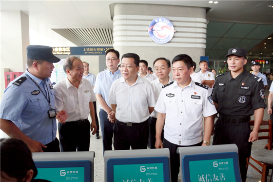 9月11日上午,市长丁纯在市委常委、高新区党工委、新北区委书记周斌,省公安厅党委委员、副厅长、副市长、公安局长常和平陪同下,专程督导新中国成立70周年国庆安保工作。在高新区公安分局三井派出所,丁纯一行实地察看了派出所综合指挥室、警营文化墙、老周道调解室等,现场参与市公安局点调,详细听取市公安局党委委员、高新区公安分局局长谢国正关于国庆安保工作的情况汇报,充分肯定公安机关安保举措扎实、作风过硬,并就进一步做好安保工作提出具体要求。在常州高铁北站,丁纯实地检查车站内外安保执勤质态,亲切看望慰问执勤民警辅警,详细了解勤务组织、警力部署、安检查控等工作情况,对公安机关坚持最高标准、最强措施、最实作风、最严要求,积极投入国庆安保攻坚冲刺给予充分肯定,要求继续强化地方、场站武装联勤,健全常态联动机制,全力抓好反恐和应急处置工作。市政府副秘书长刘卫国、钱旭健等参加督导活动。