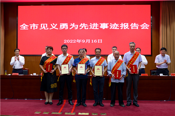 会前,市领导与见义勇为先进代表合影留念。会议举行了颁奖仪式。市见义勇为基金会理事长黄广余作全市见义勇为工作主报告。市见义勇为先进个人和先进群体代表作事迹宣讲。