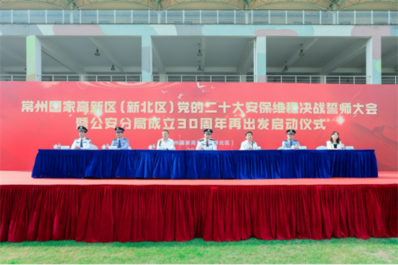 9月23日上午,副市长、公安局长于贵平出席高新区(新北区)党的二十大安保维稳决战誓师大会暨公安分局成立30周年再出发启动仪式,为巡逻防范中队授牌,实地参观警用武器装备。新北区委书记、高新区党工委副书记周庆,区委副书记、代区长石旭涌等领导出席活动。