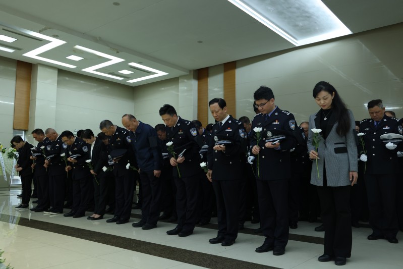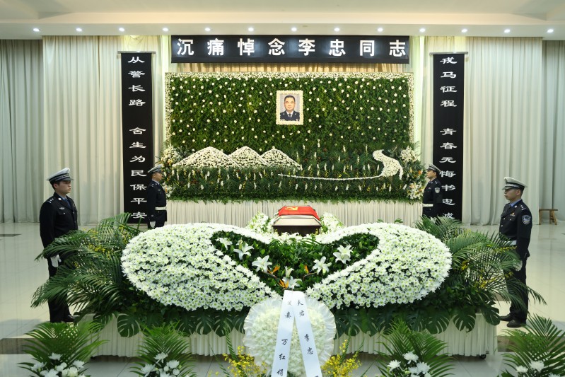 10月27日上午,市公安局交警支队高速公路一大队因公殉职民警李忠同志的遗体告别仪式在市殡仪馆举行。副市长、市公安局党委书记、局长于贵平,市委副秘书长、市政府副秘书长、市信访局局长李文光,市委政法委副书记顾涛,市公安局党委成员,市退役军人事务局、市残疾人联合会等单位负责人,公安民警、辅警代表,李忠生前战友、同学、亲朋好友,怀着无比沉痛的心情与李忠同志作最后的告别,送最后一程。告别仪式现场庄严肃穆、哀乐低回,李忠同志遗体安详静卧在鲜花丛中,参加仪式人员集体向李忠同志遗体三鞠躬,依次缓步上前向李忠同志遗体作最后送别,并向李忠同志亲属表示深切慰问。