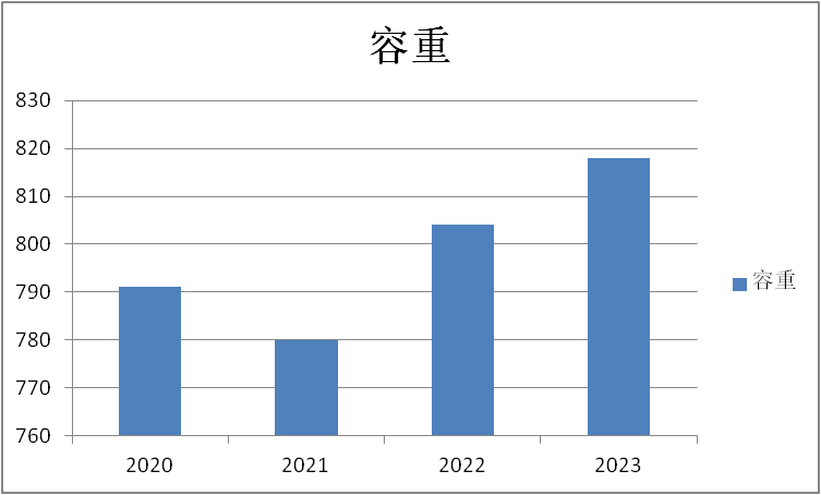 其中:武进区容重最高812g/L,最低765g/L,平均容重789g/L;金坛区容重最高842g/L,最低819g/L,平均容重830g/L;溧阳市容重最高844g/L,最低750g/L,平均容重819g/L;新北区容重最高812g/L,最低790g/L,平均容重801g/L,由数据显示容重为近四年最高(见表2、图1)。