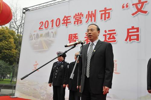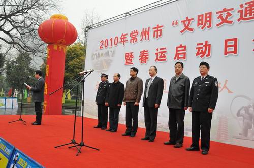 按照公安部、省厅统一部署,为认真贯彻落实中央文明办、公安部部署自2010年起至2012年在全国实施为期三年的“文明交通行动计划”,同时迅速启动2010年全市春运工作,1月30日上午8时30分,市公安局会同市文明办、交通局、安监局、经贸委等部门,在市人民公园广场隆重举行以“文明出行、平安春运”为主题的2010年常州市“文明交通行动计划”暨春运启动仪式。副市长、公安局长尚建荣出席活动并宣布正式启动2010年常州市“文明交通行动计划”暨春运活动。活动中,市客分公司代表作了表态发言,市交通局、文明办负责人分别作动员讲话,广大公安交巡警、交通协管员、文明交通志愿者、公交车驾驶员、公路客运车辆驾驶员、出租车行业驾驶员、专业运输驾驶员及市民代表组成8支方队参加了启动仪式。仪式结束后,全体人员进行了“文明交通,从我做起”集体签名活动,并走上街头积极开展交通劝导活动。