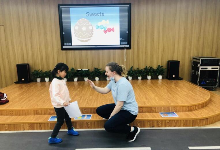 尊重、关注与鼓励:外教老师会蹲下来关注到每位孩子,在尊重孩子个性基础上鼓励他们大胆交流。