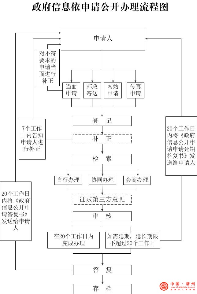 本机关处理政府信息公开申请的流程可以参见流程图: