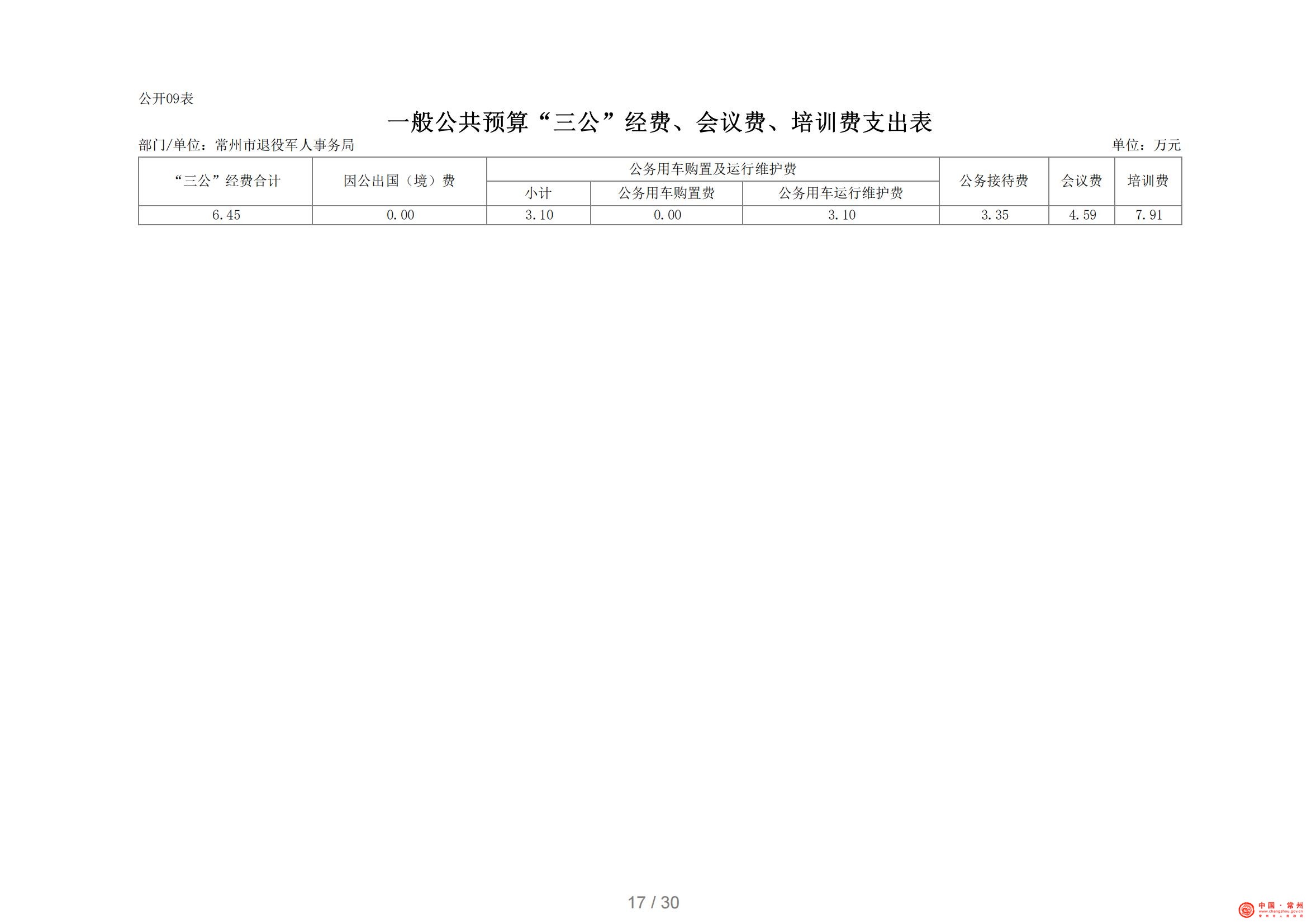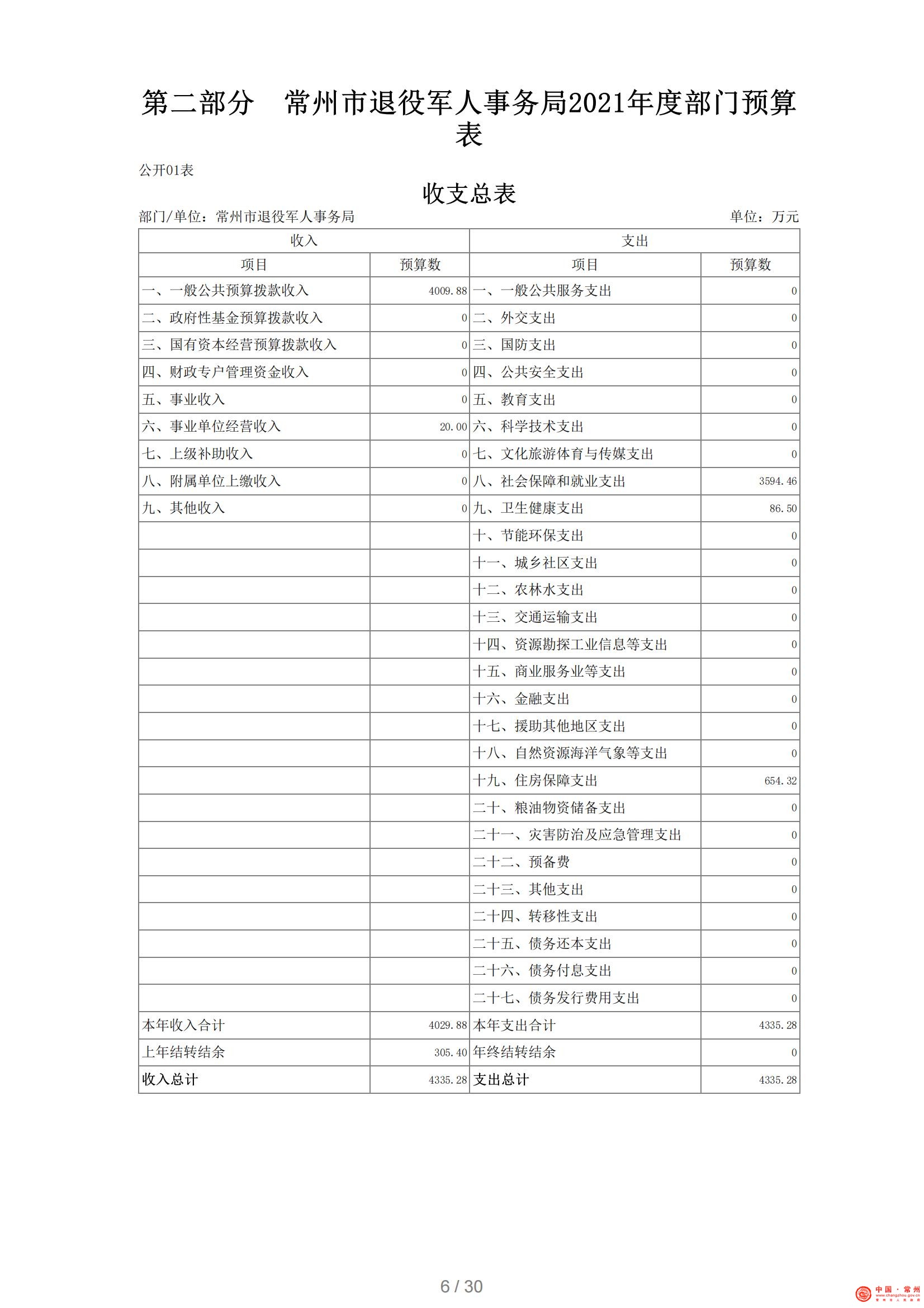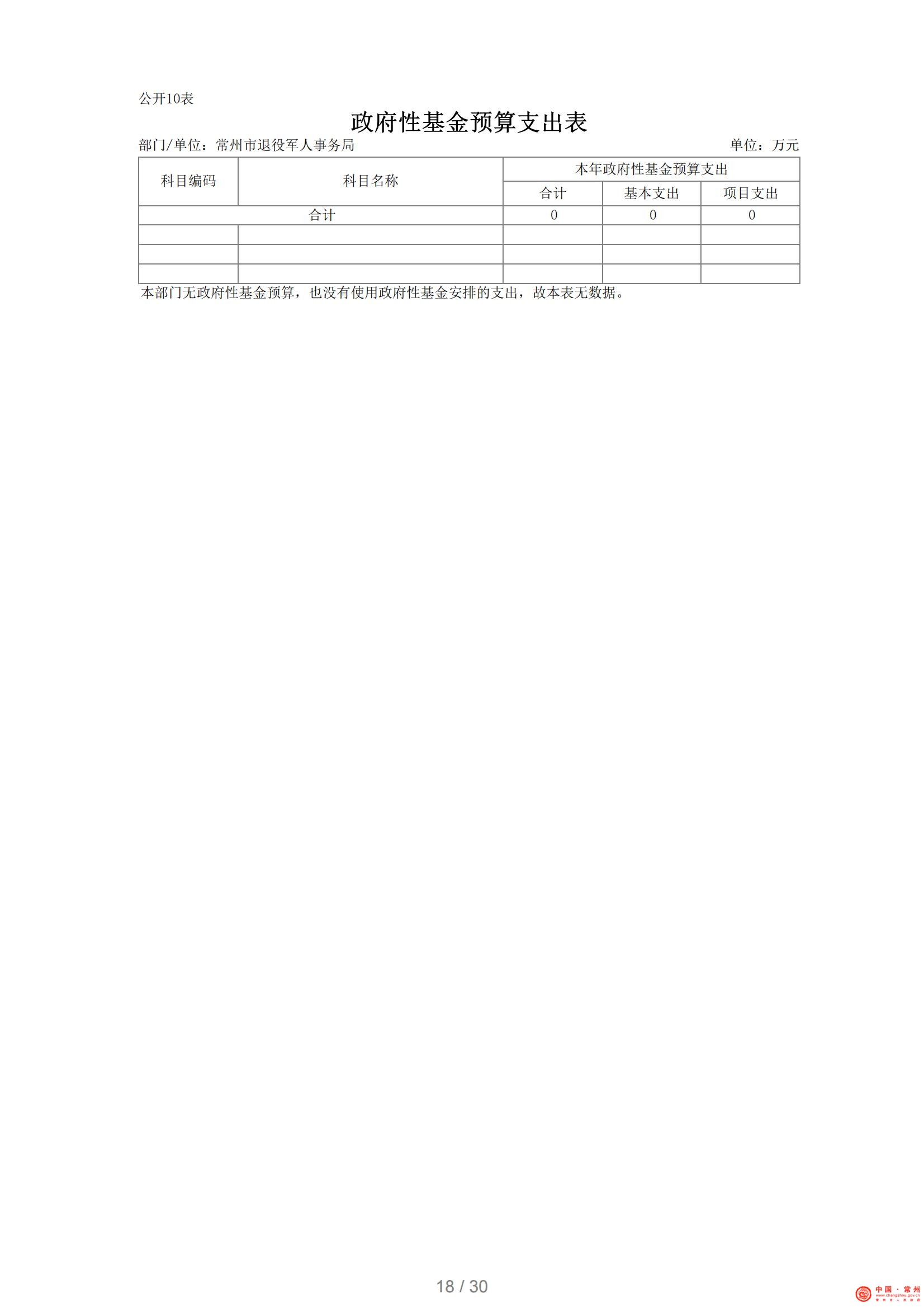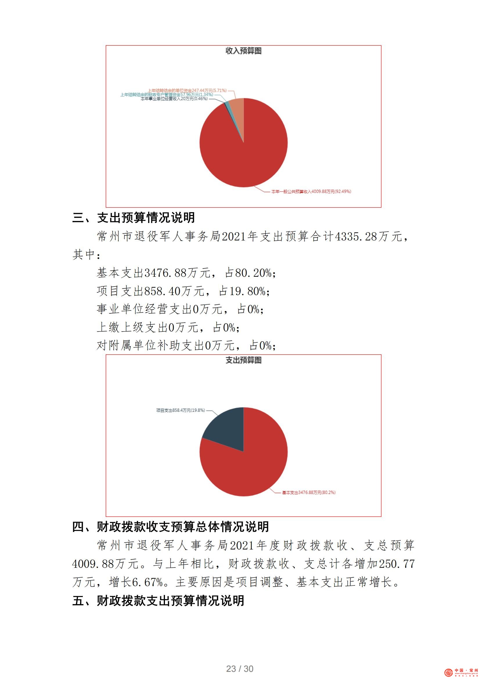 常州市退役军人事务局2021年部门预算公开