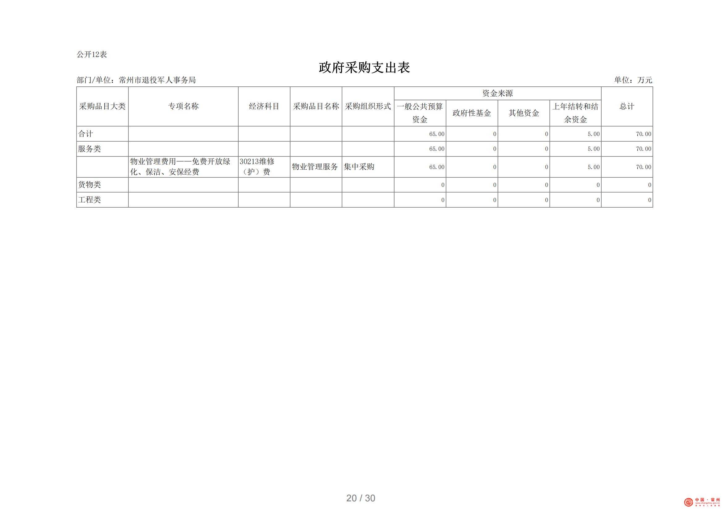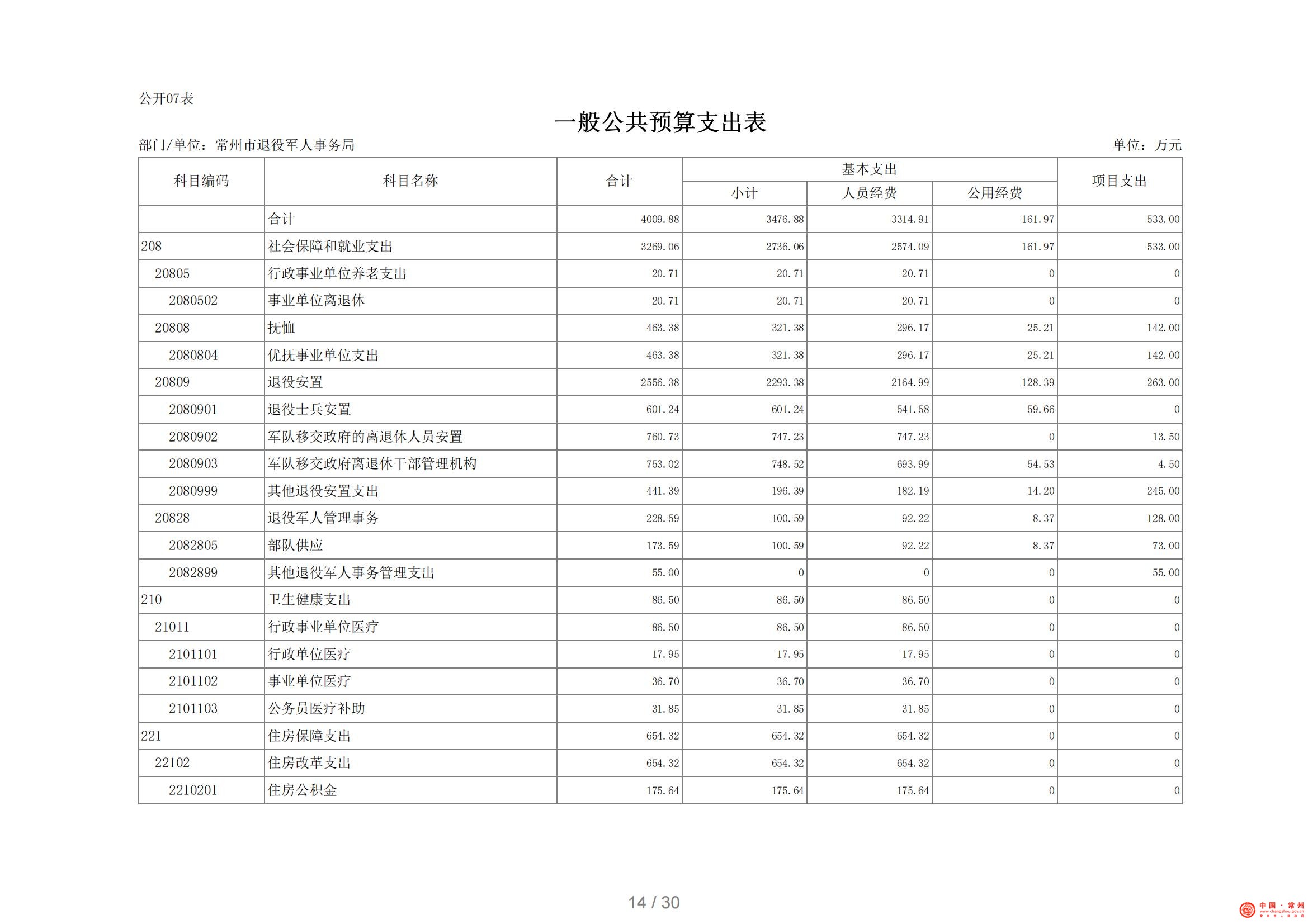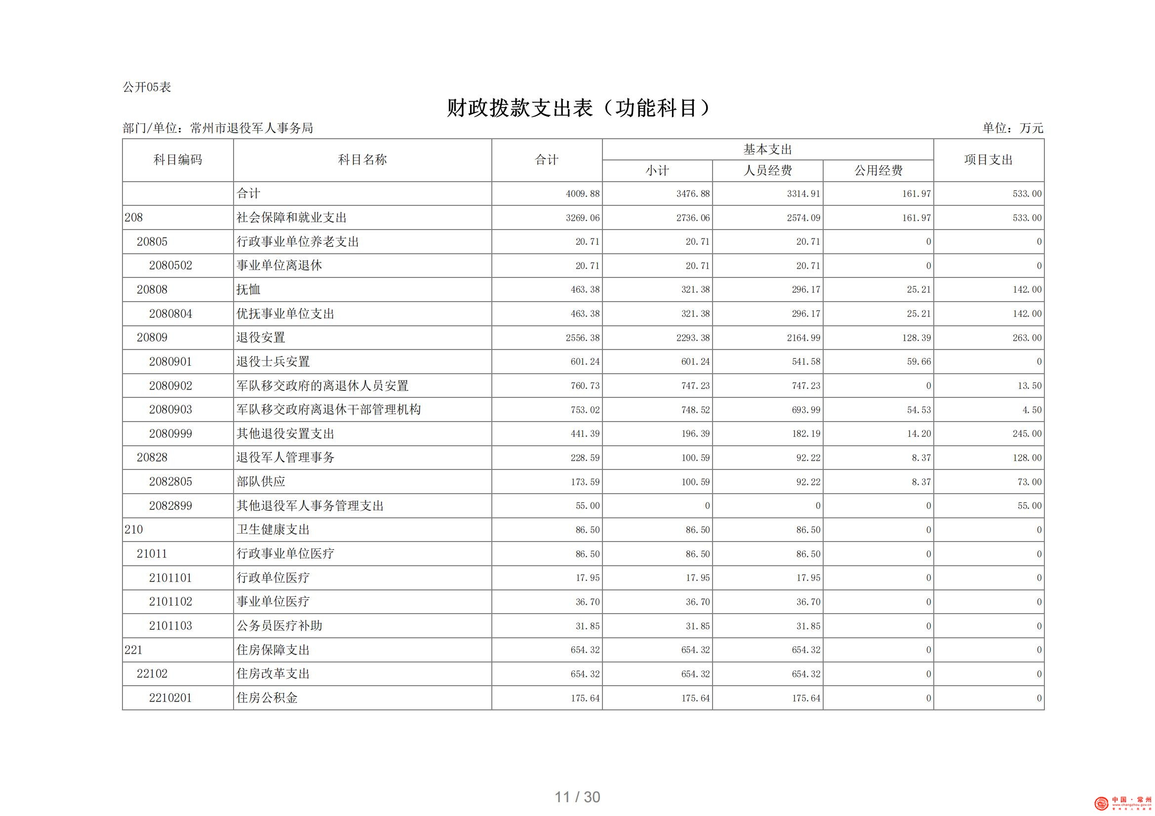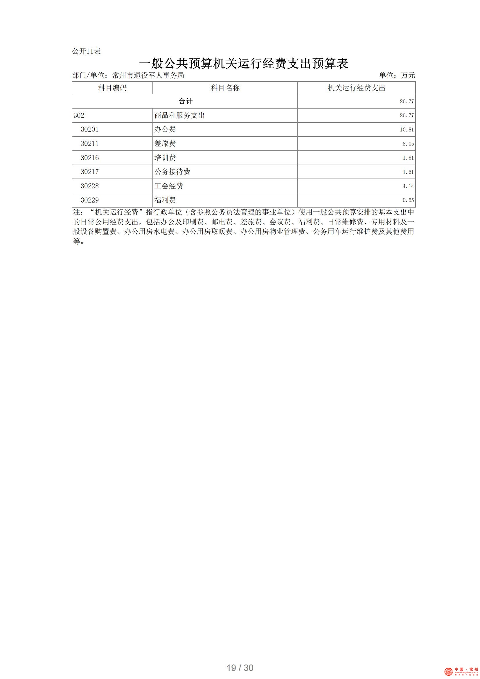 常州市退役军人事务局2021年部门预算公开