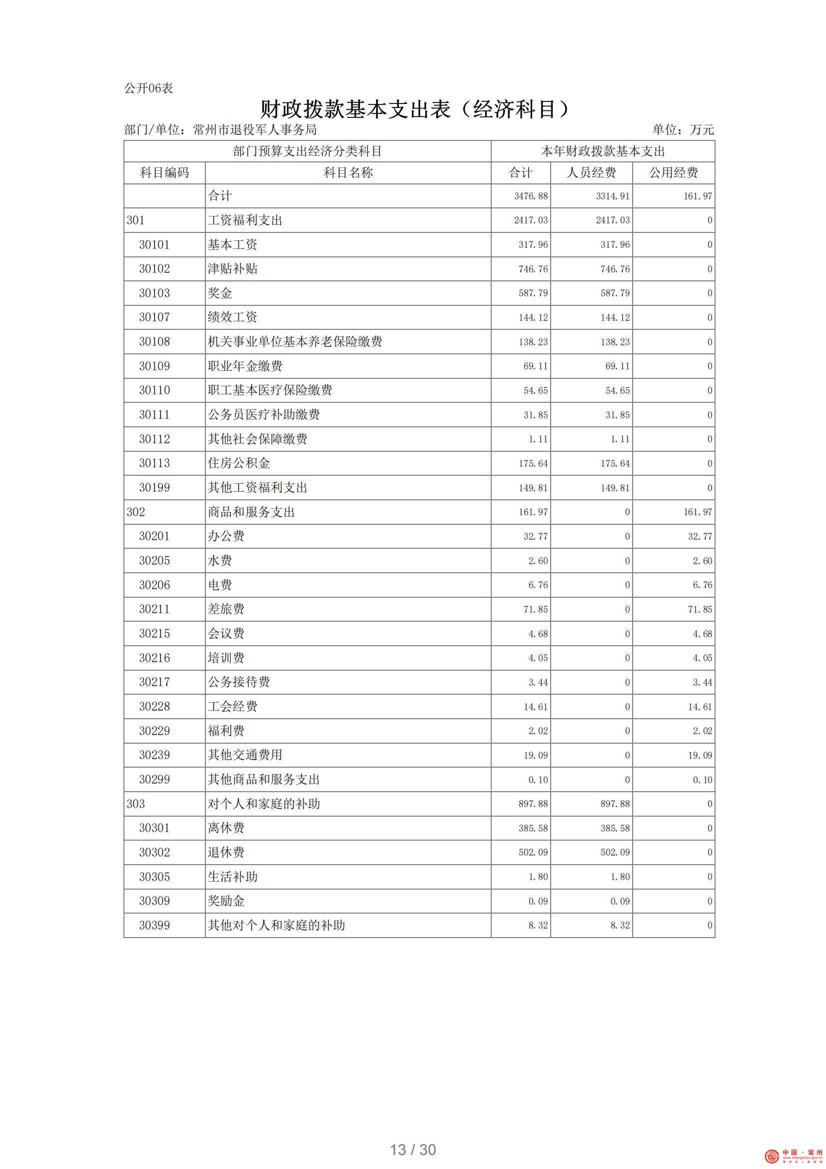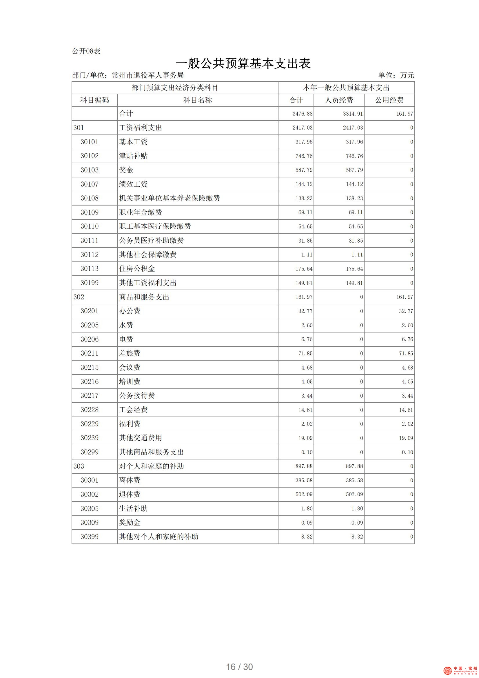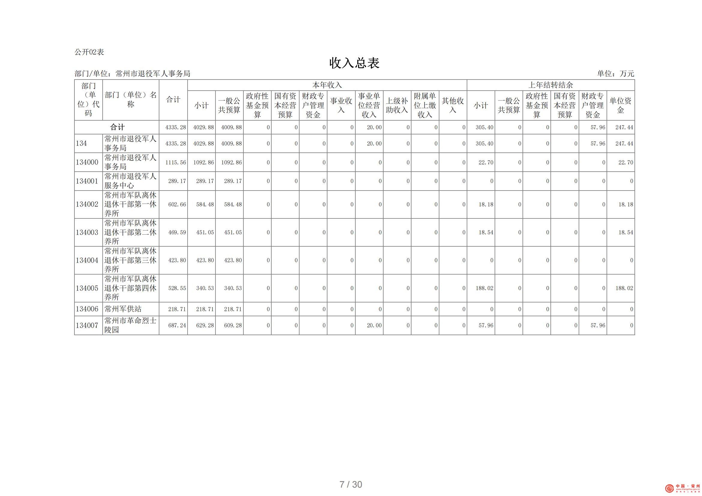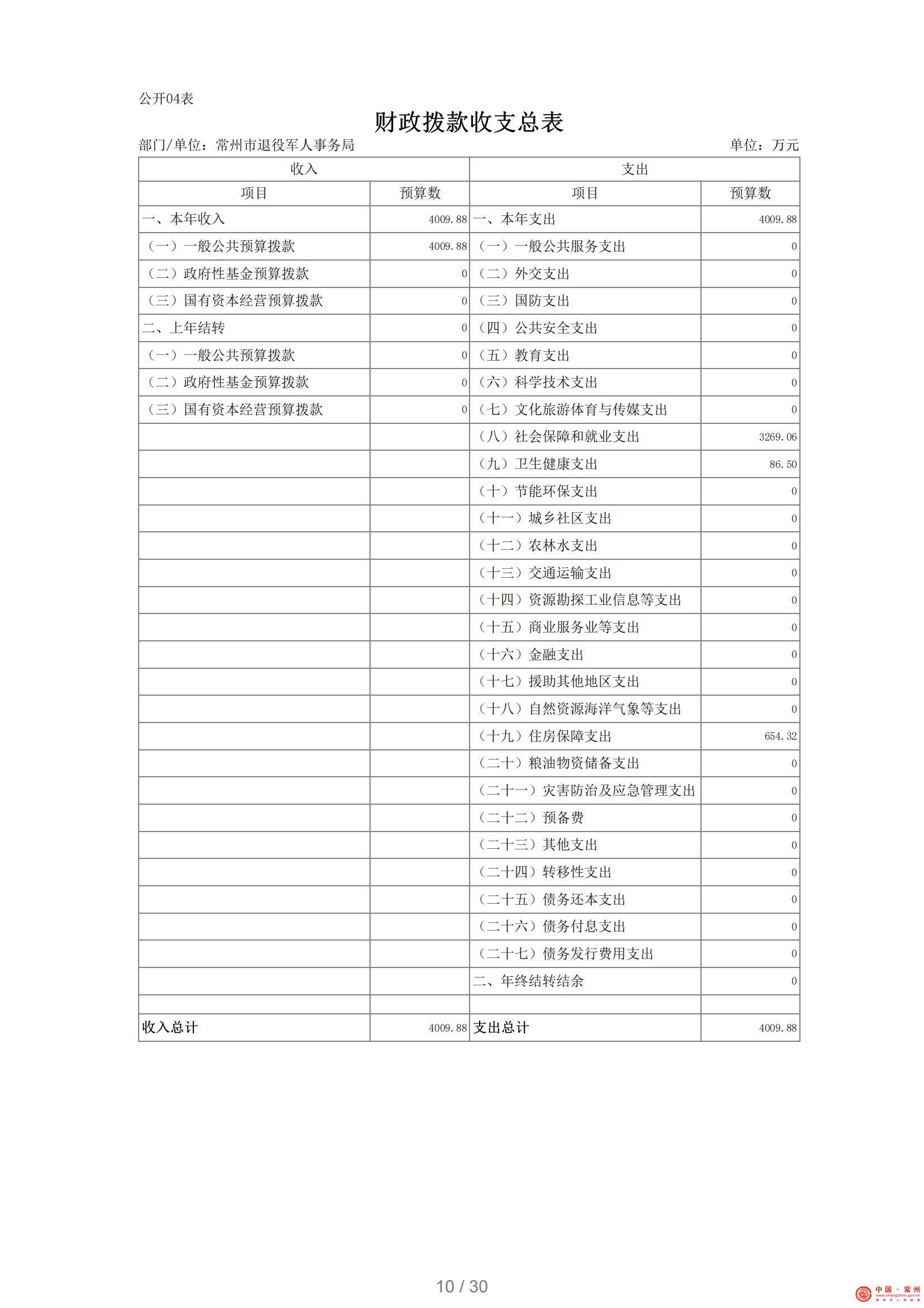 常州市退役军人事务局2021年部门预算公开