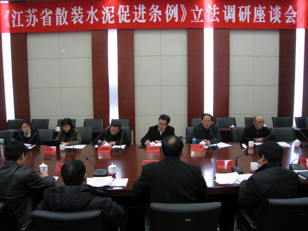 座谈会由省法制办行政法规处处长马建太主持。与会所有单位的同志对《江苏省散装水泥促进条例》(草案)(立法调研稿)都发了言,肯定了出台《江苏省散装水泥促进条例》的积极意义与作用,并从本单位角度对《江苏省散装水泥促进条例》(草案)(立法调研稿)舒述了修改意见与建议。