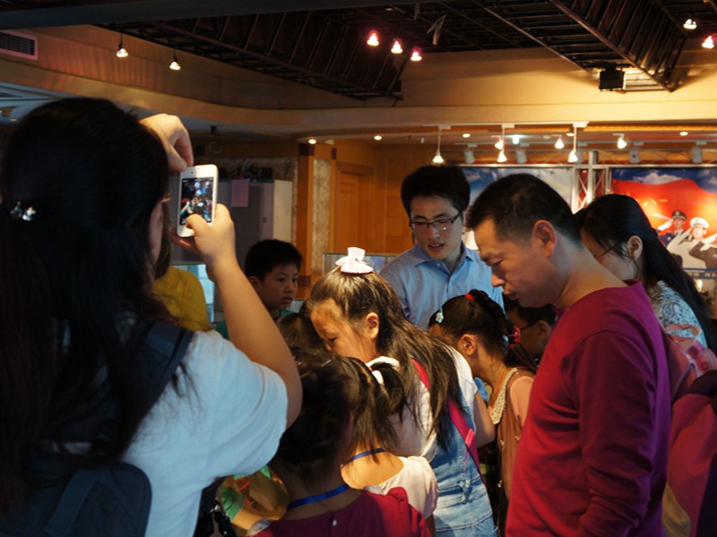 随后,小记者们兴致勃勃地参观了无线电设备陈列室。讲解员用通俗易懂的语言,向小客人们介绍了陈列展品:“这里的每一台设备都有着他们的故事,都曾发挥过重要的社会作用和军事作用。”“大家知道这是做什么用的吗?这是我国部队中曾广泛使用的八一小型(B)电台,能进行收发报、话;这三台索尼ICB-87H手持短波对讲机是许多年前外国慈善组织捐赠的,保存完好,非常稀有;这是电报机上用来敲击莫尔斯代码的电键,目前还广泛运用于部队无线电通信训练。 ”参观过程中,讲解员对于小记者提出的问题一一解答。