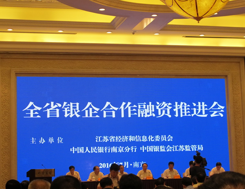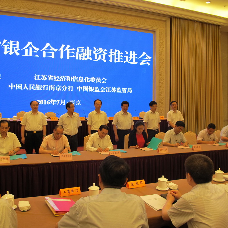 为进一步深化银企融资对接,加大金融对江苏工业转型升级的支持力度,推进全省工业经济持续健康发展,7月29日,省经信委、人民银行南京分行、江苏银监局联合召开全省银企合作融资推进会,省经信委主任徐一平、人民银行南京分行行长郭新明、江苏银监局局长扶明高在会上分别通报了今年以来全省工业经济、金融信贷形势和金融监管等工作情况,马秋林副省长出席会议并作重要讲话。。