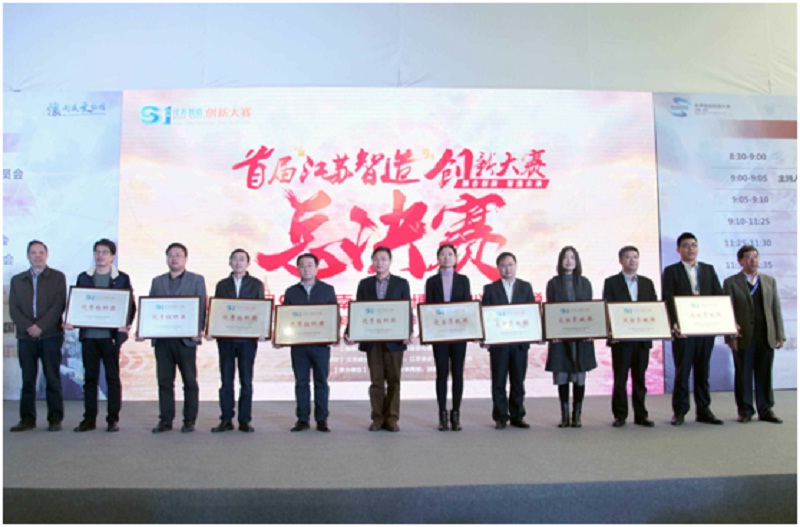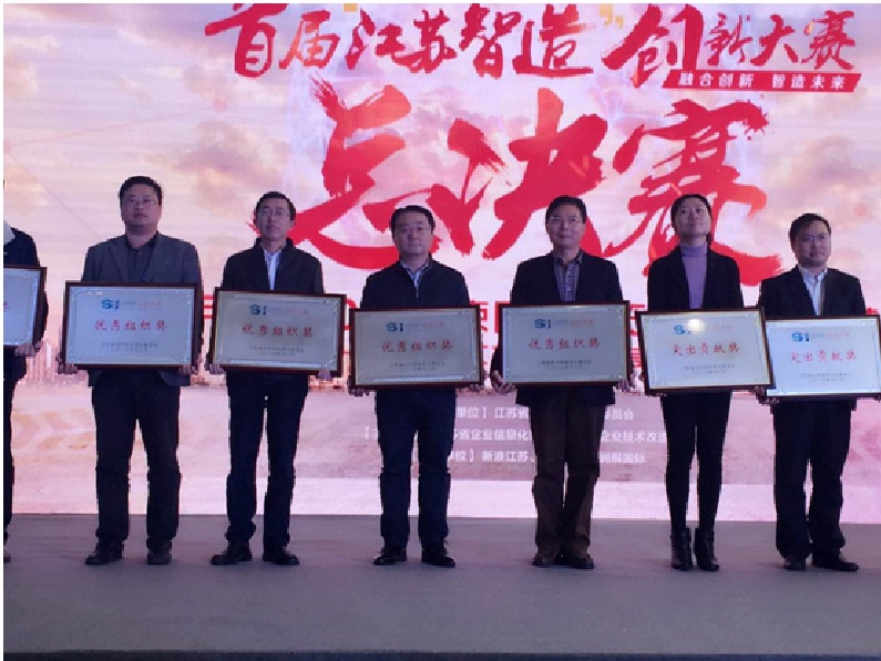 决赛现场,省经信委对获得首届“江苏智造”创新大赛优秀组织单位和突出贡献单位进行了表彰。南京市经信委、徐州市经信委、常州市经信委、苏州市经信委、盐城市经信委分别获得优秀组织奖,紫金江宁科技创业特别社区管委会、苏州市姑苏区人民政府、常州三晶世界科技产业发展有限公司、盐城国家高新技术产业开发区和徐工集团分别获得突出贡献奖。