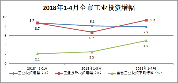 1-4月,全市工业投资保持平稳增长,重大项目支撑有力,主要情况如下: