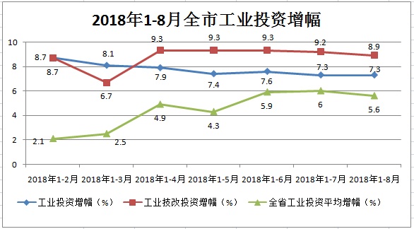 1-8月,全市工业投资继续保持平稳增长的发展态势,主要情况如下: