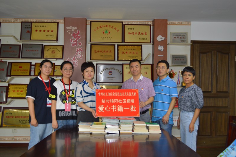 金桂飘香、双节将至,9月30日上午,常州市工信综合行政执法支队党支部的同志们带着全体党员、职工捐赠的书籍和捐款来到常州市锦阳社区献爱心、送温暖。
