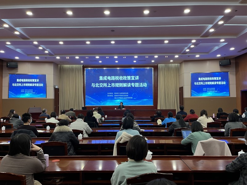 12月10日,由市工信局主办,市半导体行业协会和浙大研究院联合承办的集成电路税收政策宣讲与北交所上市规则解读专题活动在市行政中心浩然厅成功举办。市工信局副局长宗纲出席活动,各辖市(区)工信部门、市半导体行业协会会员单位、集成电路产业链企业主要负责人等90余人参加活动。