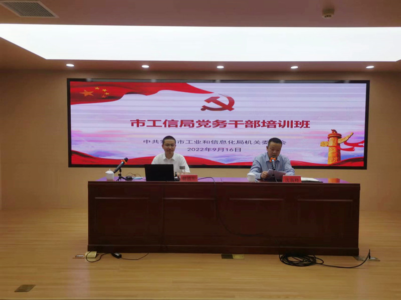 为深入学习贯彻习近平总书记关于机关党建重要论述,进一步加强党支部工作制度化规范化建设,提高党务干部业务水平和履职能力,推动更好地服务“532”发展战略、助力工业高质量发展,9月16日,市工信局举办党务干部培训班,分别邀请市委市级机关工委副书记胡锁军,市委宣讲团成员、市委党校副校长蒋鸣鹛,市委党校机关党委副书记、机关纪委书记袁崇安,为全局党务干部作专题辅导授课。