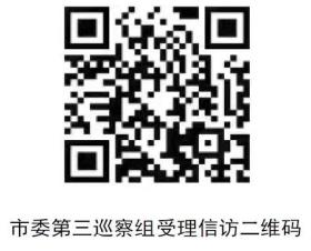 巡察期间(2022年7月26日起,工作时间为70天左右),市委第三巡察组设专门值班电话:18806123737(可接收短信),接听时间为工作日9:00-17:00;电子邮箱:czxc201703@126.com。同时在延陵西路23号投资广场5楼北侧楼梯间设置举报箱,也可通过扫描下方二维码反映相关问题。