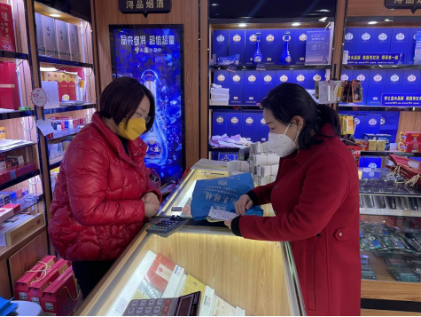 图为薛埠镇纪委工作人员检查超市账单明细