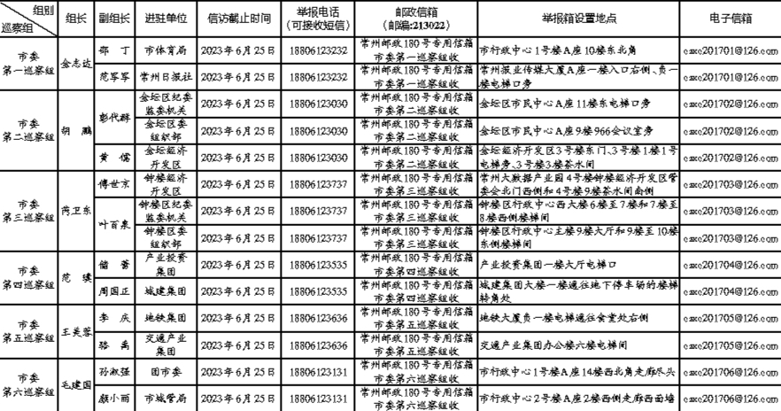 日前,各巡察组完成进驻,自2023年4月中下旬至2023年6月下旬,将进驻被巡察单位工作2个月左右,期间设专门值班电话、专门邮政信箱等(见附表)。依据《巡视工作条例》规定,市委巡察组主要受理反映被巡察党组织领导班子及其成员、下一级党组织领导班子主要负责人和重要岗位领导干部问题的来信来电来访,重点是关于违反政治纪律、组织纪律、廉洁纪律、群众纪律、工作纪律和生活纪律等方面的举报和反映。其他不属于巡察受理范围的信访问题,将按规定交有关部门处理。