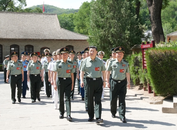 6月17日至19日,中央军委政治工作会议在陕西延安召开。中共中央总书记、国家主席、中央军委主席习近平出席会议并发表重要讲话。这是17日下午,习近平带领军委一班人和各部门各单位主要负责同志瞻仰王家坪革命旧址。 新华社记者 李刚 摄