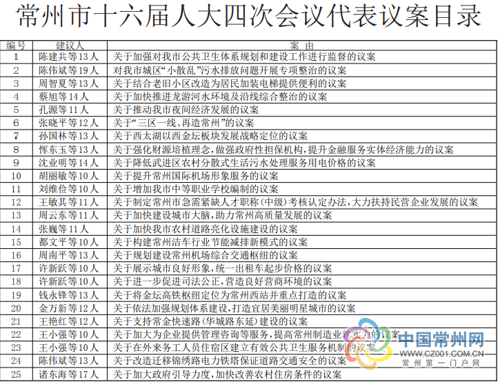 根据本次会议主席团第一次会议通过的关于议案截止时间的决定,至2020年5月13日18时,共收到代表10人以上联名提出的议事原案25件。其中,财政经济方面的7件,主要涉及提高制造业软实力、提升金融服务能力、加快新旧动能转换、推动夜间经济发展等;教科文卫体方面的4件,主要涉及公共卫生体系建设、职称考核认定等;环资城建方面的13件,主要涉及水环境治理、老旧小区整治改造、城乡规划建设等;民主法制方面的1件,主要涉及促进司法公正。