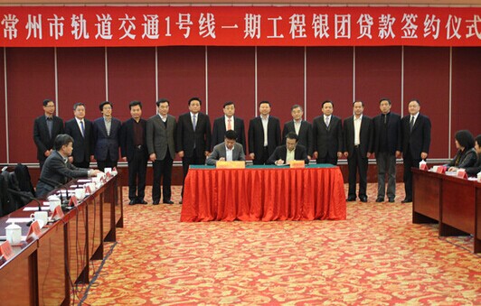 12月26日下午,常州市轨道交通发展有限公司与国家开发银行、建设银行、中国银行、交通银行、邮储银行、江南银行组建的银团正式签订贷款协议,地铁1号线一期工程获得总额约145亿元银团贷款,这是迄今我市规模最大的银团贷款。