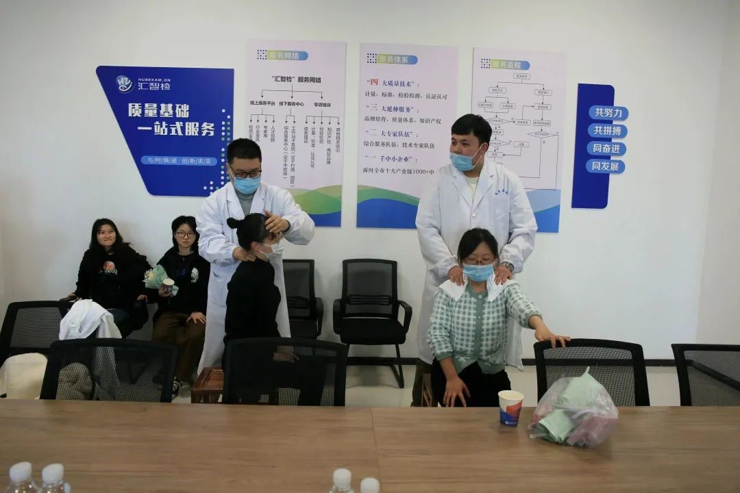 中医科为在场女职工进行推拿按摩、艾灸、刮痧、穴位贴敷等中医适宜技术的治疗。