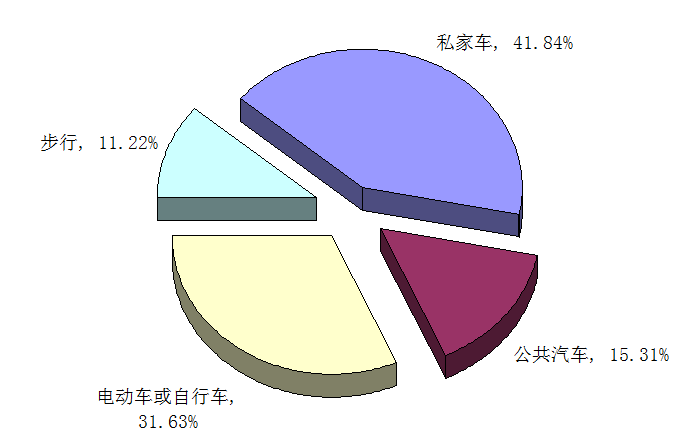 5.被调查人的出行方式中私家车出行的占41.84%,公共汽车出行的占15.31%,电动车或自行车出行的占31.63%,步行的占11.22%。