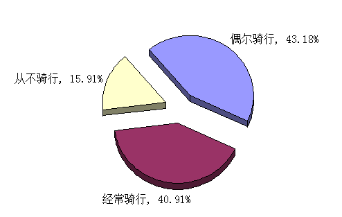 6、参加问卷调查的人群中偶尔骑行非机动车的人占43.18%,经常骑行的占40.91%,从不骑行的占15.91%。