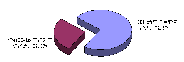 7、参加问卷调查的人群中有非机动车占领车道经历的占72.37%,没有的占27.63%。