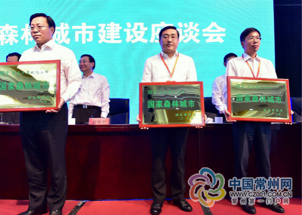 在9月19日召开的2016全国森林城市建设座谈会上,国家林业局正式授予常州市“国家森林城市”称号,市长费高云在授牌仪式上接受奖牌。