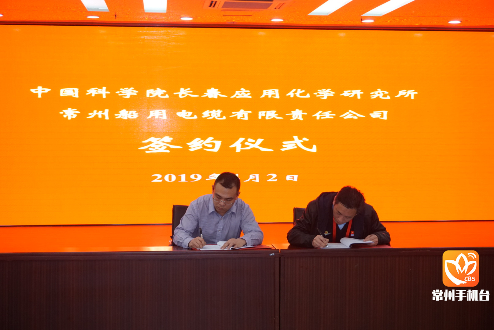 交流对接中,常州市船用电缆厂与长春应化所签订了高性能陶瓷化硅橡胶的应用合作项目。