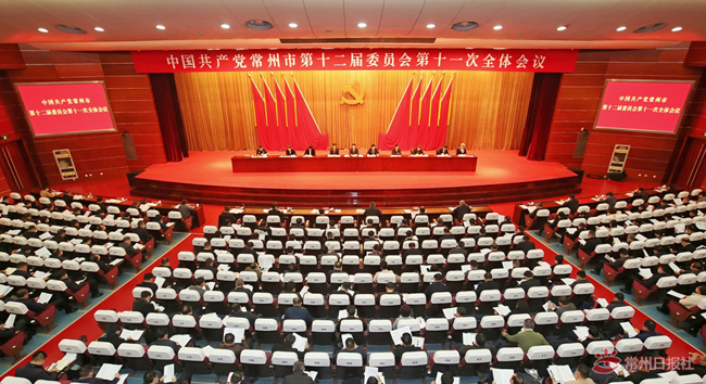 12月26日上午,中国共产党常州市第十二届委员会第十一次全体会议在市行政中心举行。全会全面贯彻党的十九届五中全会以及中央经济工作会议精神,深入落实习近平总书记视察江苏重要讲话指示精神,贯彻落实省委十三届九次全会精神,总结“十三五”和今年工作,部署“十四五”和明年工作,动员全市上下承前启后、继往开来,以“争当表率、争做示范、走在前列”的使命担当,奋力开启全面建设社会主义现代化国家新征程。